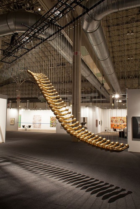 Произведения других художников с мировым именем, наоборот, являются своеобразной иронией влияния золота на массы. Работа Dario Escobar представляет собой стаканчик из Макдональдса, покрытый сусальным золотом, а Sylvie Fleury покрыл позолотой обычную мусорную корзину. Инсталляция датско-норвежского дуэта Elmgreen & Dragset под названием «Искушение» представляет собой выступающую из стены руку с мешком монет. Как бы то ни было, золото никогда не потеряет своей ценности независимо от того, в где и в каком виде оно представлено.