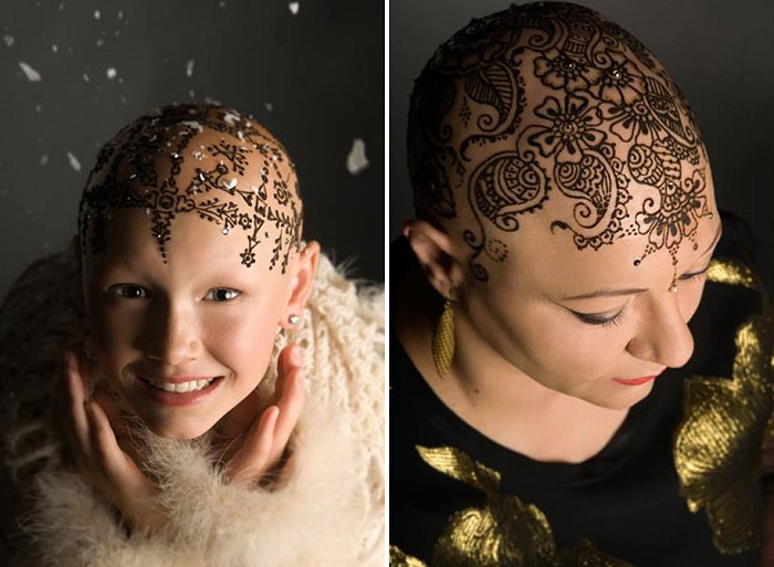 Henna Heals – это сообщество канадских художников, которые делают оригинальные татуировки хной женщинам, потерявшим волосы после сеансов химиотерапии. Таким образом мастера помогают онкобольным снова почувствовать себя красивыми и уверенными в себе.