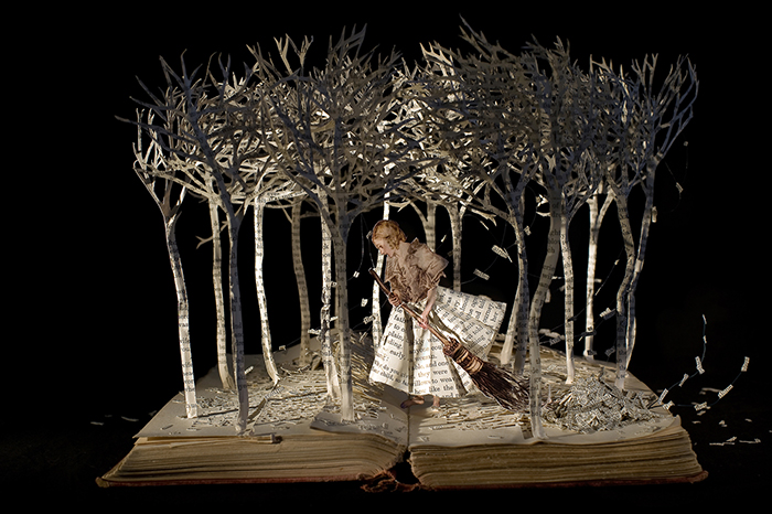 Художница Su Blackwell не просто вдыхает в старые книги новую жизнь, а создает на пожелтевших страницах фантастические миры. Ее называют «книжным скульптором» и выдающимся талантом современности, ведь при помощи тонкого лезвия и клея автор рассказывает захватывающие истории, проникнутые духом мистицизма и меланхолии.