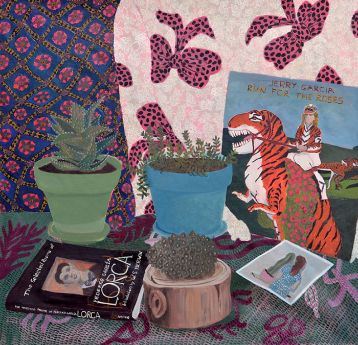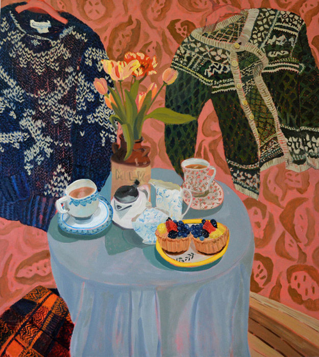 Уникальная техника и неповторимый стиль написания забавных красочных натюрмортов маслом выделяется на фоне работ других художников, работающих в данном направлении. Картины талантливой американской художницы изобилуют тропическими принтами, геометрическими узорами и большим количеством мелких деталей. Атмосферные натюрморты излучают тепло и уют, слегка напоминая домашние узорчатые покрывала.