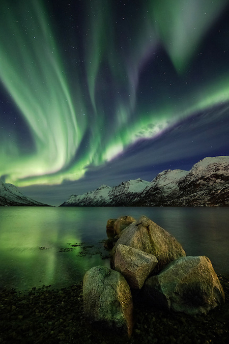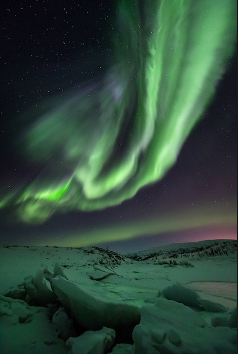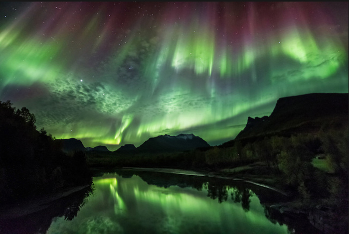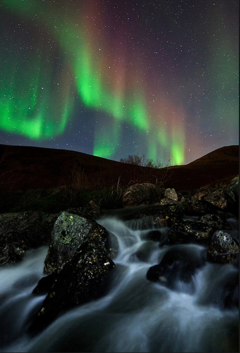 "Фотографию "Сияние над рекой" я сделал в ночь на 19 сентября по дороге домой. В два часа ночи небо осветило невероятное сияние, так что я просто был вынужден остановиться. Дело было возле реки Сигналелва в северной части Норвегии. Потрясающее зрелище развернулось передо мной: изумрудно зеленые лучи становились в глубине неба ярко-красными. Это было так масштабно, что мне казалось, будто это сияние могут увидеть даже в Швеции, а то и в Финляндии... "