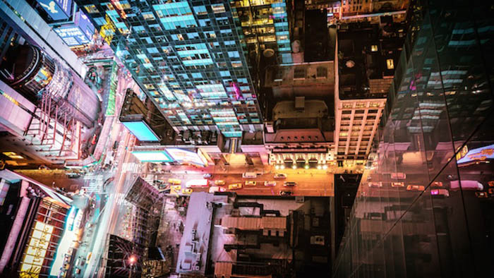 Разноцветный Нью-Йорк, залитый огнями.