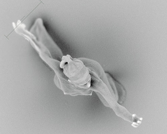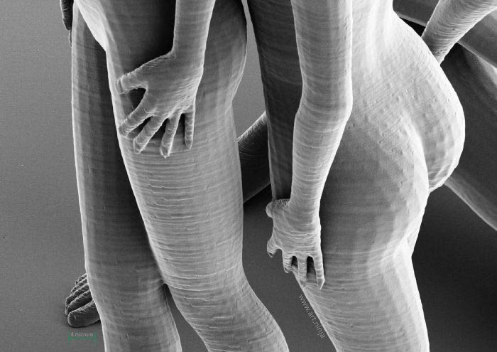 Скульптуры лондонского художника Jonty Hurwitz невозможно увидеть невооружённым глазом. Их размер – тоньше человеческого волоса, а уровень детализации фигур – просто сумасшедший!