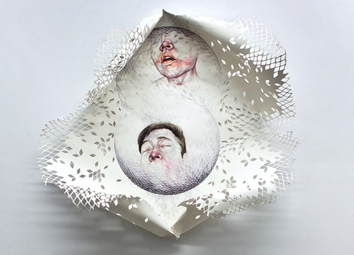 Аккуратно смятые листы бумаги с изящной фигурной резьбой уже сами по себе являются небольшими своеобразными скульптурами. Дополненные потрясающей живописью, они превращаются в настоящие произведения современного искусства.