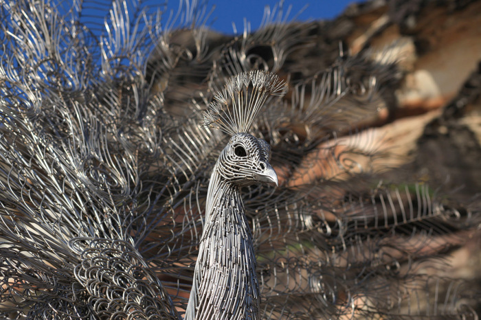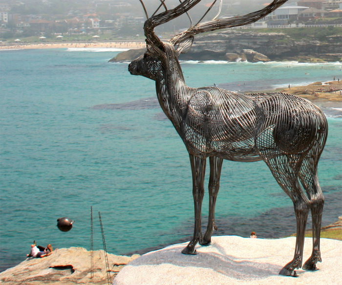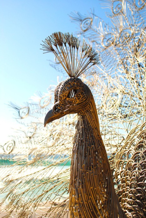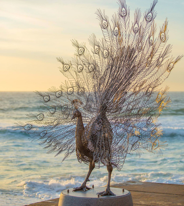 Невероятно красивые и изящные скульптуры оленя и павлина, сделанные из стальной проволоки, расположились у самого берега моря в Австралии. Их автор так умело интегрировал свои работы в окружающую среду, что металлические животные превратились в сказочных почти невесомых существ, гордо расположившихся на фоне фантастических морских просторов.