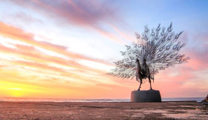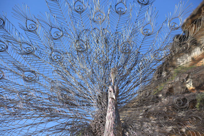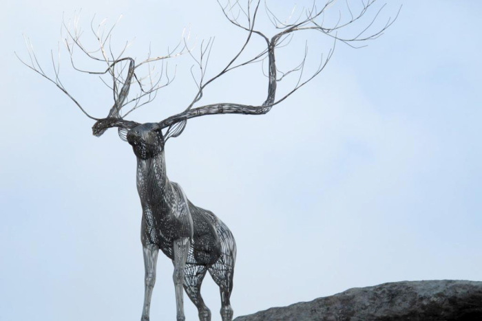 Южнокорейский скульптор Byeong Doo Moon представил свои "Скульптуры у моря" сделанные из проволоки. Нержавеющий олень напоминает собой древо жизни, чьи рога-ветки печально тянутся к небу в поисках последних лучей солнца. А павлин притворившейся гигантской тенью, пытается взлететь ввысь.