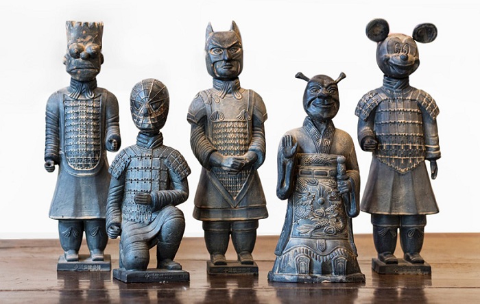 Американский скульптор Лизабет Ева Россофф (Lizabeth Eva Rossoff) в своей новой серии фигур «Xi’an-american warriors» представила известных героев мультфильмов и комиксов в образе воинов терракотовой армии. В суровых солдатах можно узнать Микки Мауса, Шрека, Барта Симпсона, Бэтмена и Человека-паука.