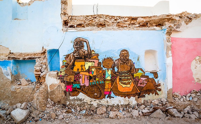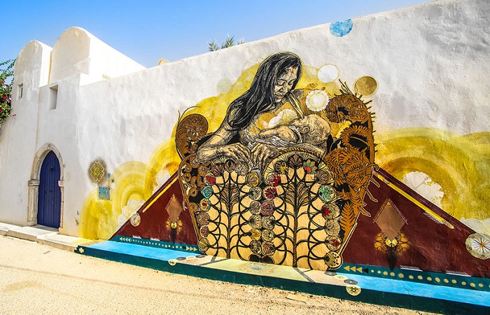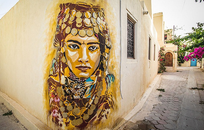 Более 150 художников из 30 стран мира приняли участие в масштабном арт-проекте «Djerbahood» по художественной росписи стен одной из старейших деревень Туниса. Результат получился впечатляющим. Теперь на полуразрушенных стенах можно увидеть всевозможные проявления стрит-арта: граффити, трафареты, портреты, которые вмиг преобразили фасады зданий и сделали их еще более самобытными.
