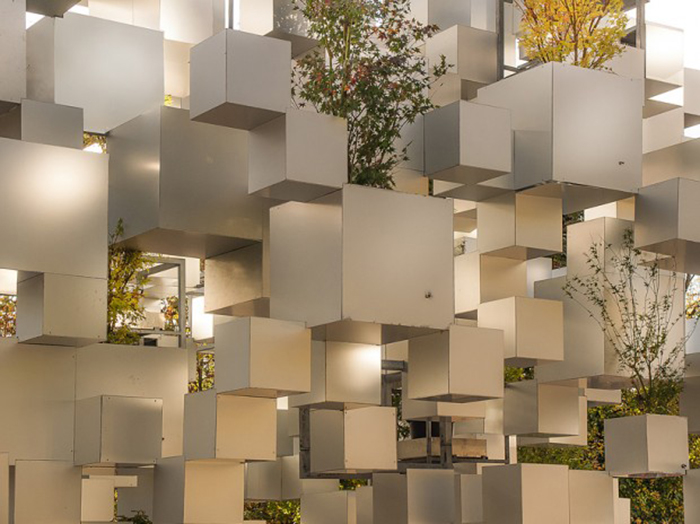Необычная установка в одном из парижских парков представляет собой оригинальную арт-инсталляцию от японского дизайнера. Скульптура состоит из кубов разных размеров, которые в совокупности визуально напоминают пиксельные квадраты, каким-то невероятным образом материализовавшиеся в реальной жизни.
