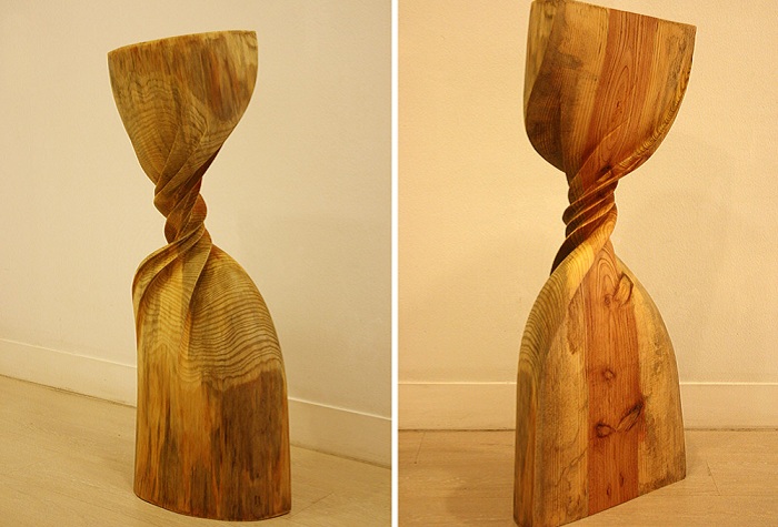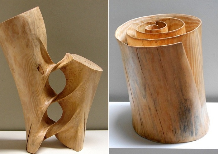 Глядя на эти скульптуры, с трудом верится, что сделаны из настоящего дерева. Кажется, что кто-то просто взял и легко скрутил их по спирали, словно листок бумаги или пластилин.