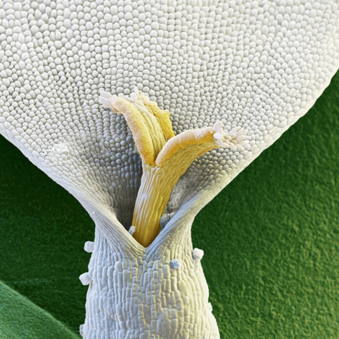 Эта великолепная серия фотографий цветов и растений, была сделана с помощью электронного микроскопа, после чего их просто раскрасили. При огромном увеличении такие привычные и знакомые растения, выглядят совсем иначе.