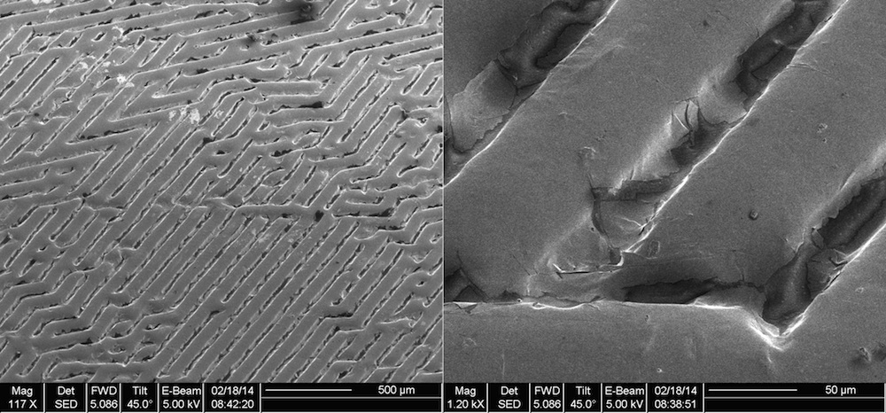 ультрафиолетовой лампой. И на стали возникает гравюра. Затем