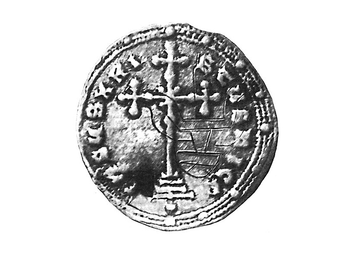 Изображение меча – граффити на византийской монете, найденной в составе клада в Островском районе Псковской области в 1930 г.