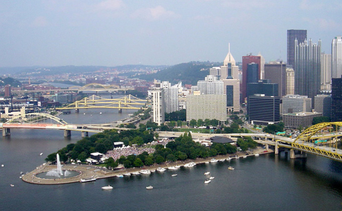 С населением всего 300 000 Питтсбург является вторым по величине городом в Пенсильвании. Ег называют Стальным городом по вполне очевидным причинам, здесь работает более трёхсот компаний, тем или иным образом связанных со сталелитейным бизнесом. Кроме того, у него есть ещё одно название, Город мостов, поскольку их по всей его территории построено примерно 450 штук.