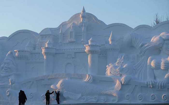 Через несколько дней в Китае стартует самый масштабный фестиваль скульптур из снега и льда. В нем примут участие несколько тысяч мастеров со всего мира. На всеобщее обозрение выставлены уже несколько огромных инсталляций из снега.