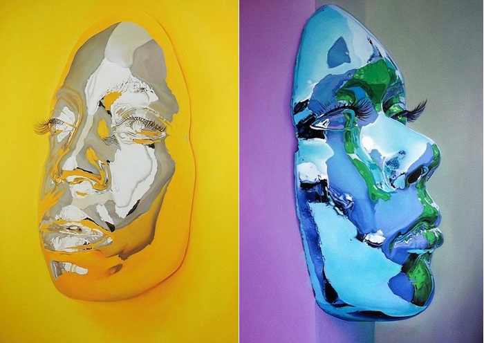 Эти гиперреалистические образы являются современной интерпретацией традиционных африканских масок. Автор лишь добавил немного хромированной краски, и вот, уже кажется, будто портреты почти живые и проявляются прямо из стены.