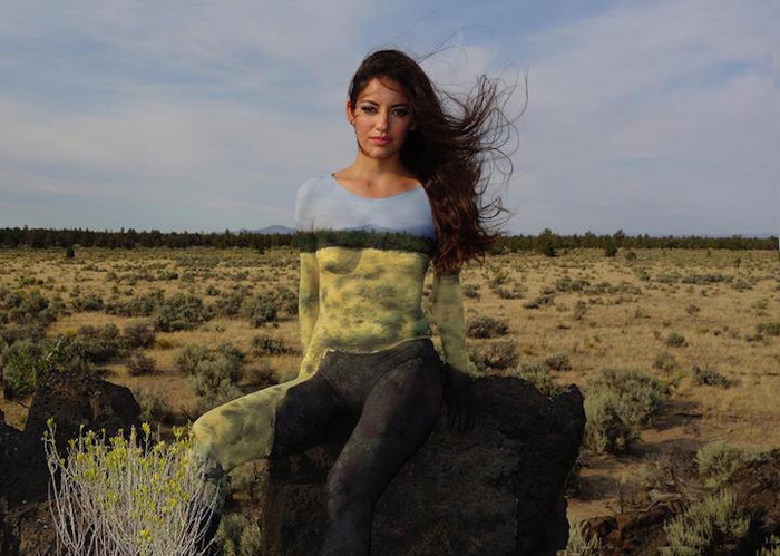 Натали Флетчер (Natalie Fletcher) живет в штате Орегон, который известен своей красотой природы, где можно одновременно найти прекрасные горы и очаровательные пляжи. Именно эти пейзажи Натали и переносит на тела своих моделей, как бы растворяя их в окружающей среде. Немного краски и мастерства - и вот уже облака "плывут" по спинам, и деревья "шумят" на руках.