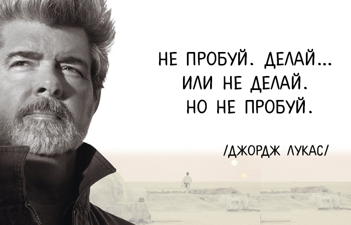 14 мая 1944 года на ранчо в Модесто в штате Калифорния родился Джордж Уолтон Лукас младший. В детстве он мечтал стать профессиональным автогонщиком, и кто знает, не случись автомобильное аварии, после которой Лукас решил посвятить себя кинематографу, мир так бы и не увидел ни «Звёздных войн», ни «Индианы Джонса». В нашем обзоре цитаты величайшего мечтателя и фантазера, которые заставляют оглянуться на собственную жизнь и хотя бы на минутку задуматься.