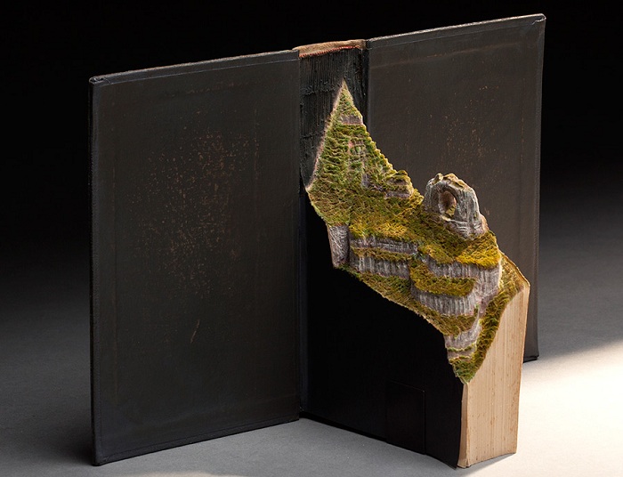 Многие могут посчитать, что резьба по книгам – это, по меньшей мере, кощунство. Однако мастер по этому ремеслу совершенно так не считает. Он покупает книги на местных барахолках и создает из них потрясающие трехмерные ландшафты.