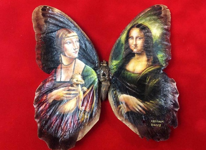 Казалось бы, в каких уж только формах и конфигурациях зрители не видели копии шедевров мировой живописи. Но при этом интерес к ним не угасает до сих пор. Мексиканский художник тоже решил использовать эту тему, но сделал это по-своему. Парень нарисовал Мону Лизу и Даму с горностаем прямо на крыльях бабочек.