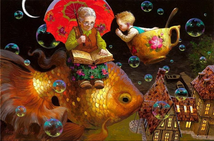 Сказка - это, пожалуй, то единственное благо, которое в сегодняшнем сверхсовременном мире не утратило своей душевности и теплоты. Что может быть лучше бабушкиных историй и дедушкиных небылиц, рассказанных на ночь любимым внукам? Современный художник Виктор Низовцев предлагает окунуться в волшебный мир сказки, его работы манят как малышей, так и взрослых, ведь они приоткрывают нам путь в удивительную страну под названием Детство.