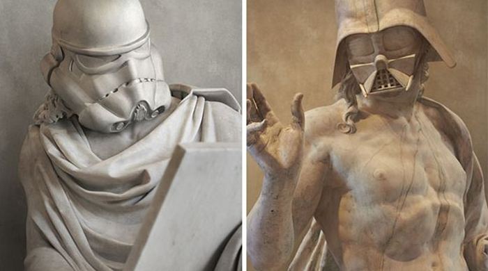 Скульптор из Франции Тревид Дёрден сочетает в своих работах два своих увлечения - древнегреческое искусство и мир поп-культуры. В его работах герои сериала "Звездные войны" представлены в виде греческих статуй. Ну, почти "статуй"...