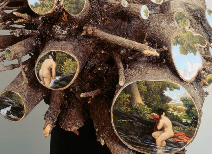 "Мои работы показывают, как идеализированные пейзажи могут подчеркнуть наше отношение к природе, наш опыт, наши чувства к искусству и культуре," - пишет у себя на сайте Мирицугу. Ей хочется выделить этот контраст - умершего, срезанного дерева - и живого идеалистического нетронутого человеком пейзажа. Создать эдакий конфликт между тем, что картина, прославляющая наслаждение жизнью, нарисована на мертвой древесине.